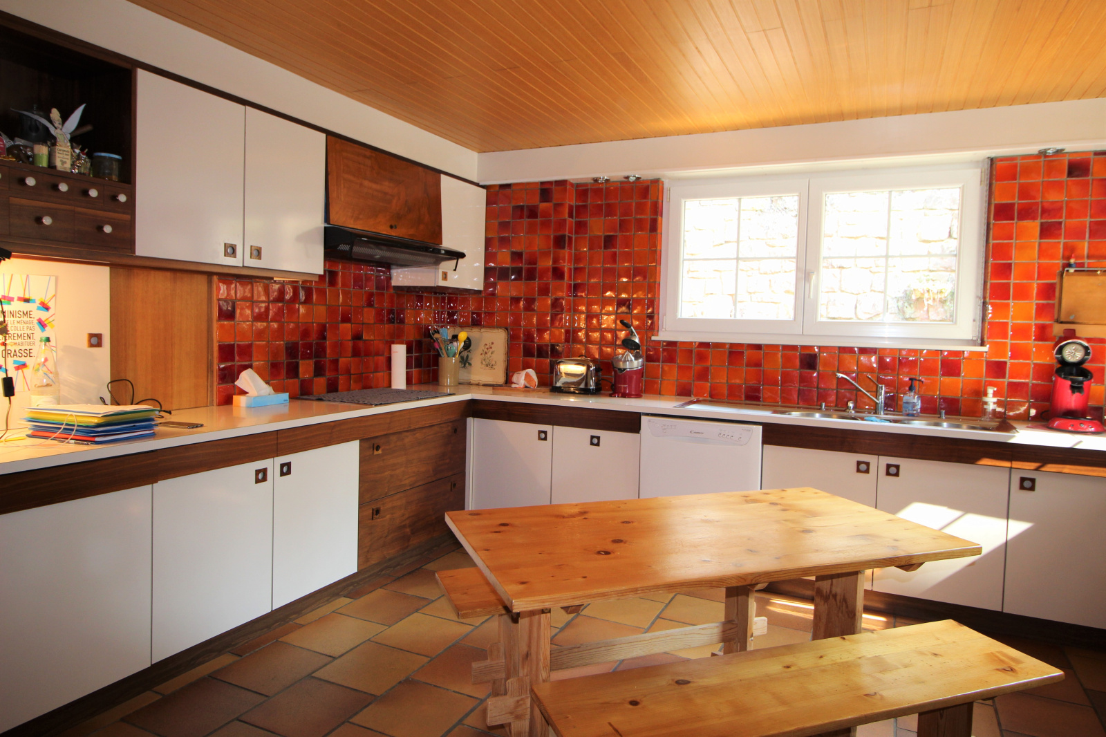 Elle est composée d'un beau hall d'entrée, un jardin d'hiver, deux séjours dont un de 55 m² avec cheminée, une cuisine équipée, une salle télé, 3 chambres (possibilité de créer une 4ème), une salle de bain, une salle d'eau, une buanderie, un bureau, 3 caves, un garage et un grand jardin.