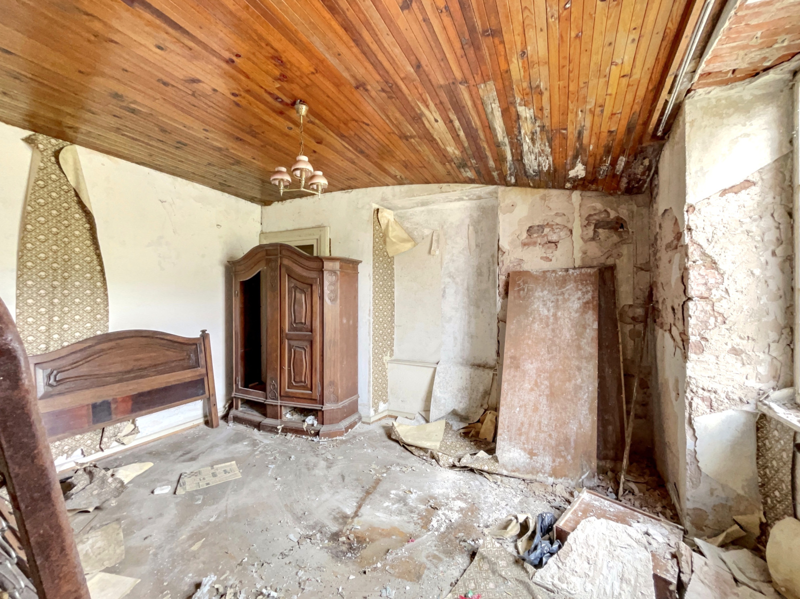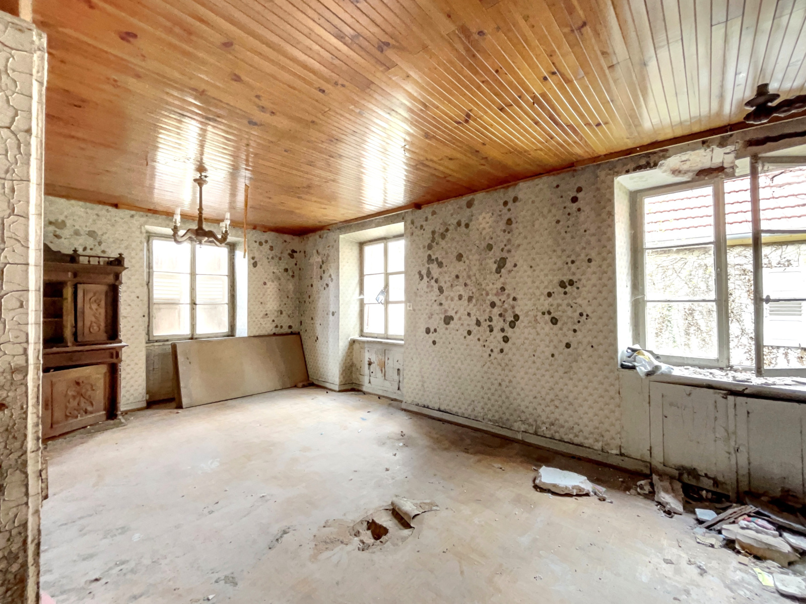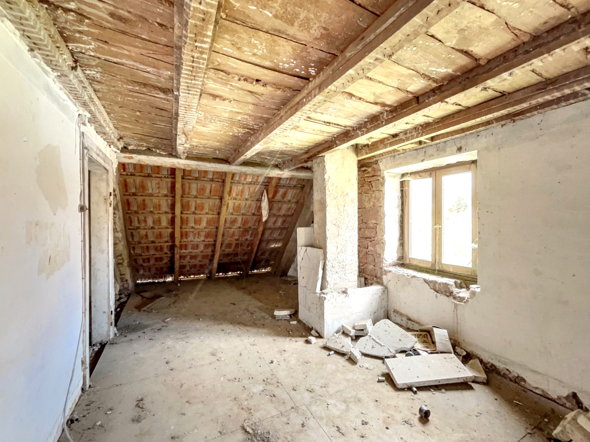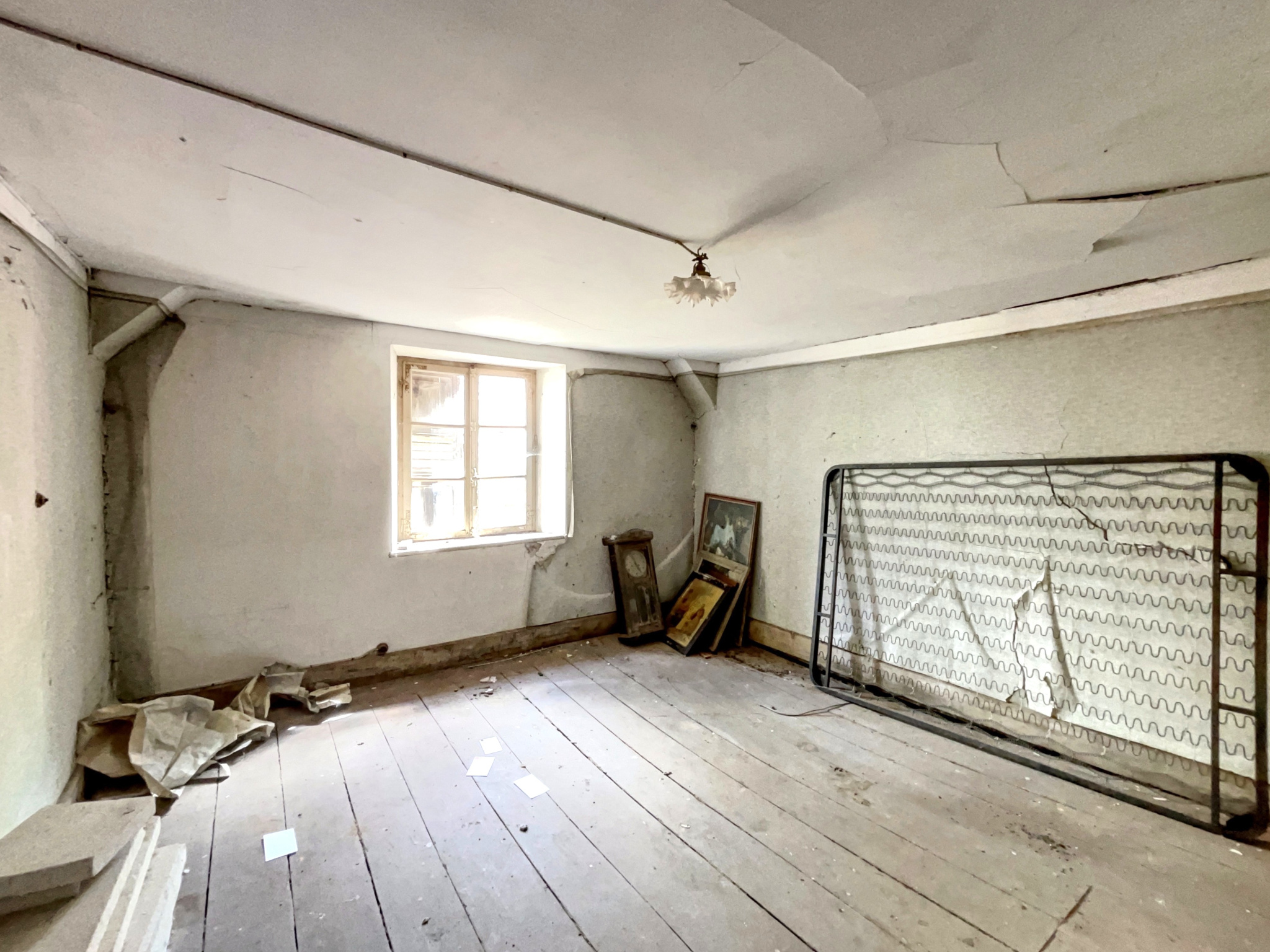 Bien vétuste et inhabitable en l’état, nécessite une rénovation complète, il présente cependant un beau potentiel pour un projet personnalisé.